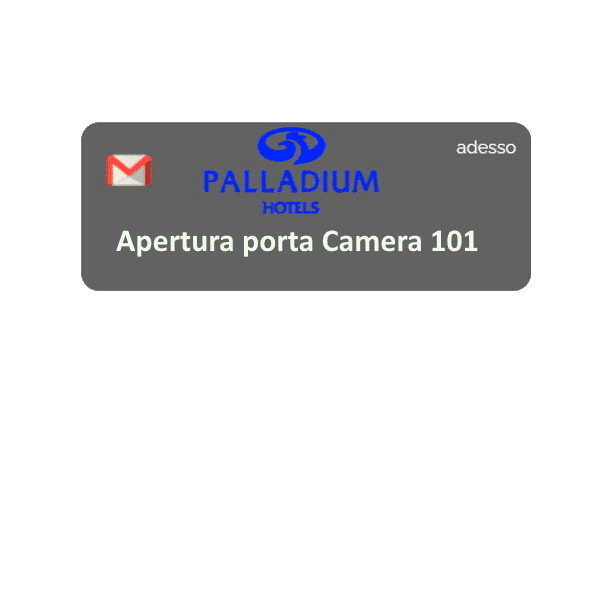 Invia in automatico email di allarme o di entrata cliente in camera, accensione riscaldamenti, etc…